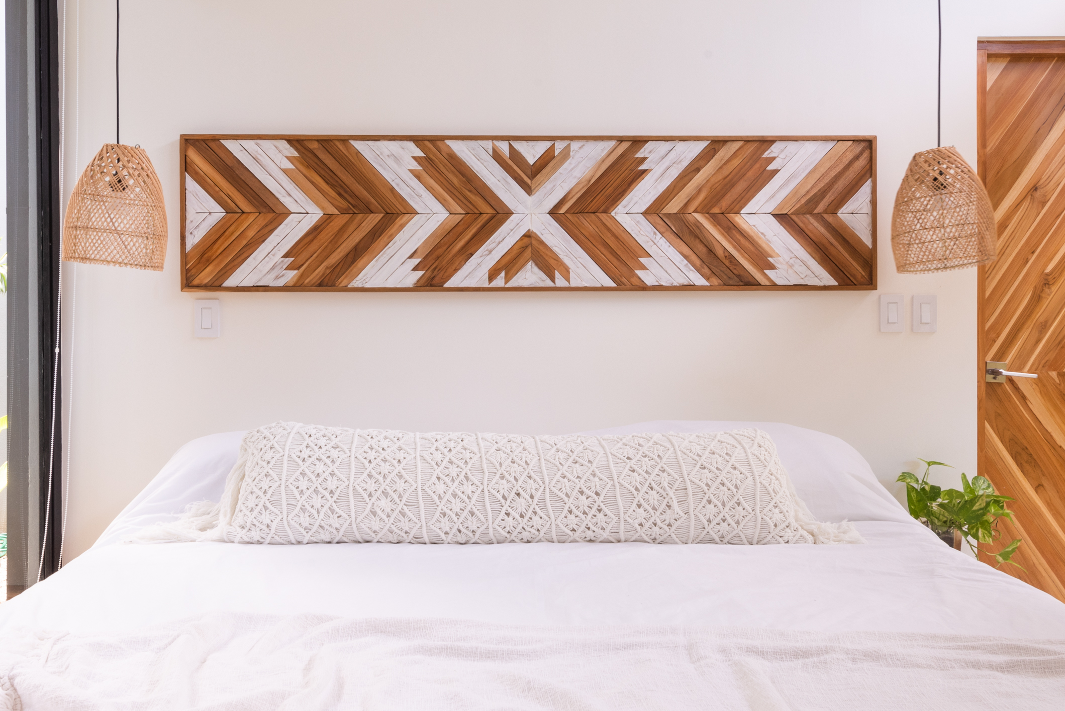 The room is elegantly furnished with a king-sized bed, providing the ultimate in comfort and relaxation. You’ll also find a custom-made desk and closet, handcrafted from local woods, adding a touch of authenticity and warmth to the space.